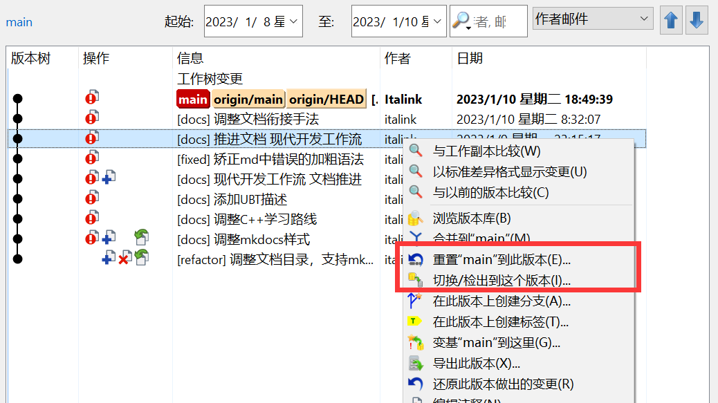 好的提交规范可以让你的日志看上去更直观,比如笔者不同时期的提交记录: