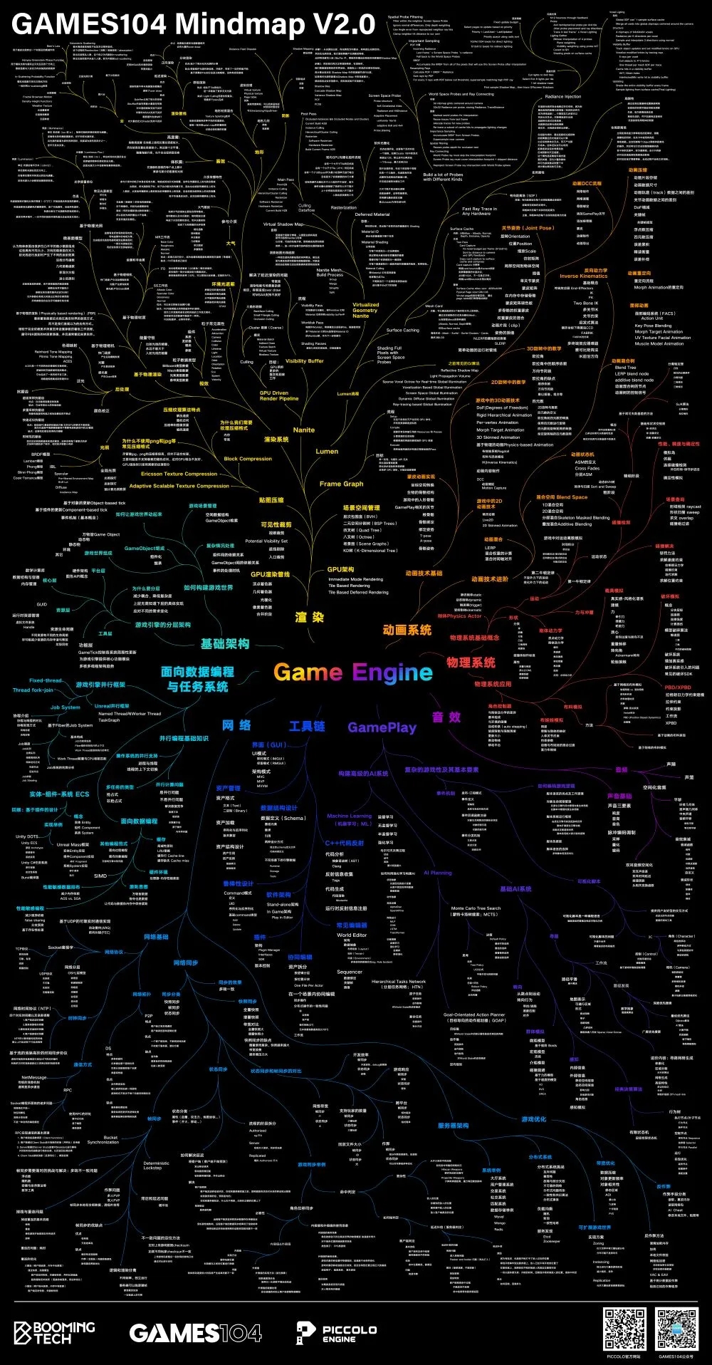 比如下方Games104呕心沥血整理的知识图谱,虽然看上去有些恐怖,但如果没有这张图,你会觉得更恐怖...